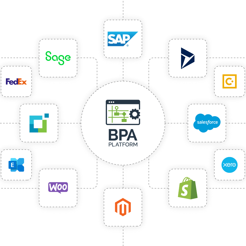 Deploy BPA Platform in a environment to reduce the cost of bespoke integration projects and enable your systems and applications to work together via an extensive range of rapid install Connectors, Web Services (REST or SOAP) or ODBC/OLEDB data sources.